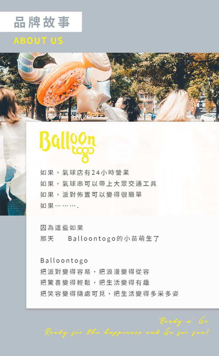 Welcome to Balloontogo!! 訂單滿3600元 免運