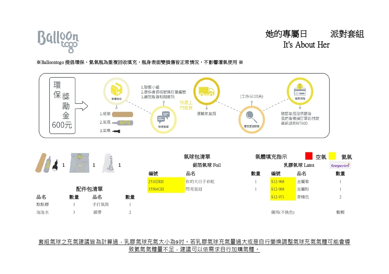 跟Balloontogo一起愛地球,氣瓶回收,支持循環使用 + 環保獎勵金NT600元(單瓶)